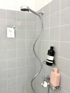 The apartment features one bedroom furnished with one bed along with a fully equipped kitchen that includes a refrigerator, coffee machine, tea and coffee making facilities, dining table, as well as a washing machine for added convenience. The bathroom offers both a shower and bathtub options along with body soap, shampoo, and a hairdryer. Additional room amenities consist of heating, wardrobe/closet space, an iron, clothes drying rack, towels, bed linen including feather and non-feather pillows plus a work desk.